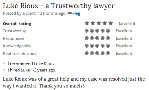 These reviews were published on my AVVO profile: