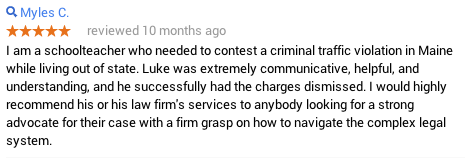 This case involved several driving offenses and the client was unable to return to Maine:
